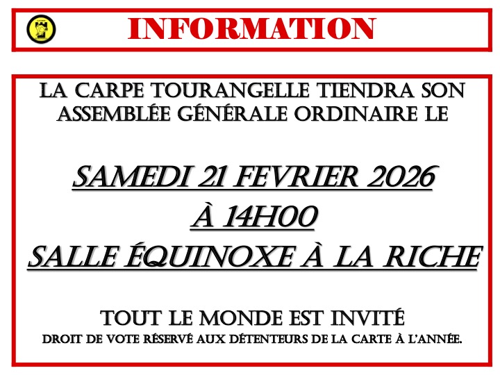 Toute l'équipe de LA CARPE TOURANGELLE vous souhaite de passer un agréable moment en sa compagnie.